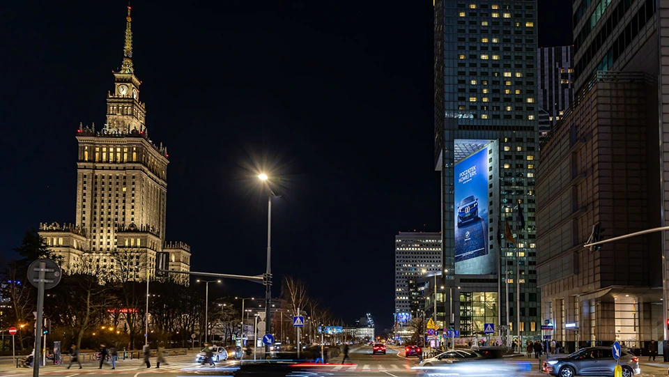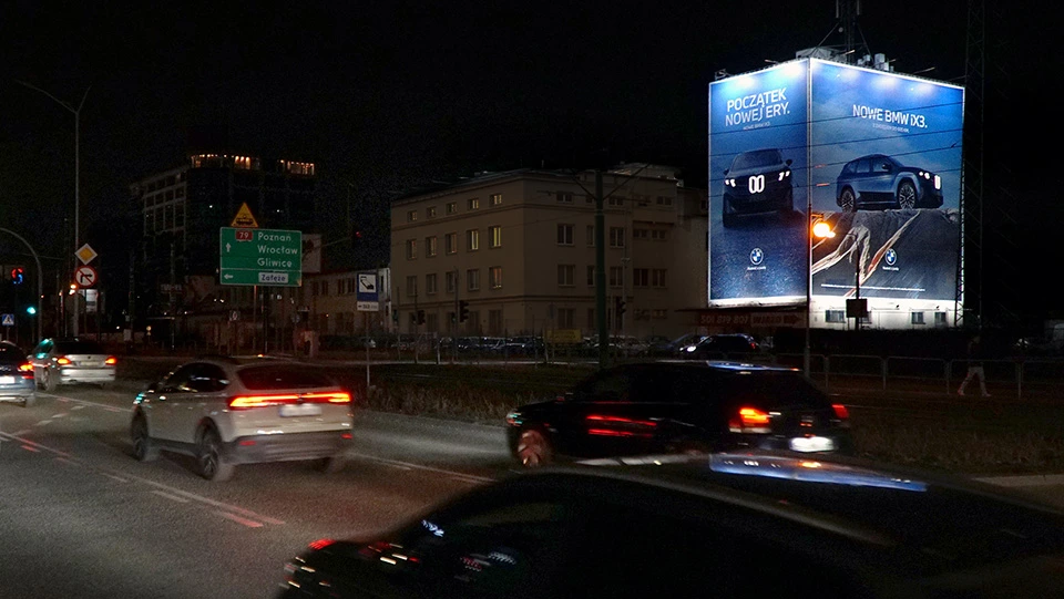W kampanii wykorzystano prestiżowe formaty XXL w Katowicach, Warszawie i Wrocławiu oraz przy drogach ekspresowych. To lokalizacje o dużym natężeniu ruchu, istotne w dotarciu do kierowców. Nośniki wielkoformatowe są widoczne z dużej odległości i pozostają czytelne również dla odbiorców będących w ruchu. Z tego względu wielki format dobrze sprawdza się w komunikacji marek motoryzacyjnych, zwłaszcza wtedy, gdy liczy się szybka identyfikacja marki i czytelność przekazu.